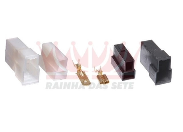 KIT ALOJAMENTO 2 VIAS MACHO/FEMEA TERMINAL 6,3 – Ref.: ETE7502 – Código do Produto: 30964 – Fabricante: RAINHA DAS SETE – Categoria: ELETRICA